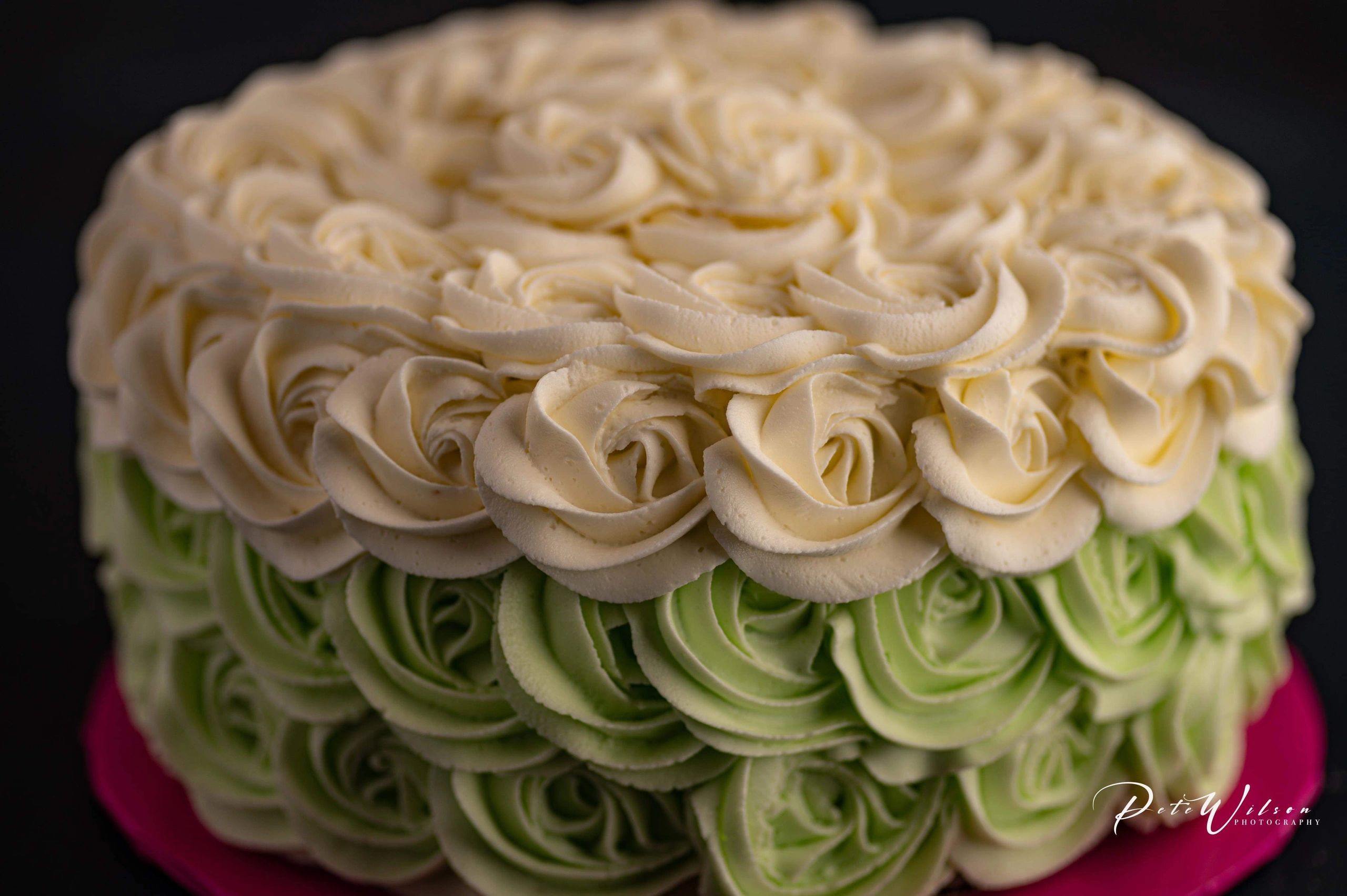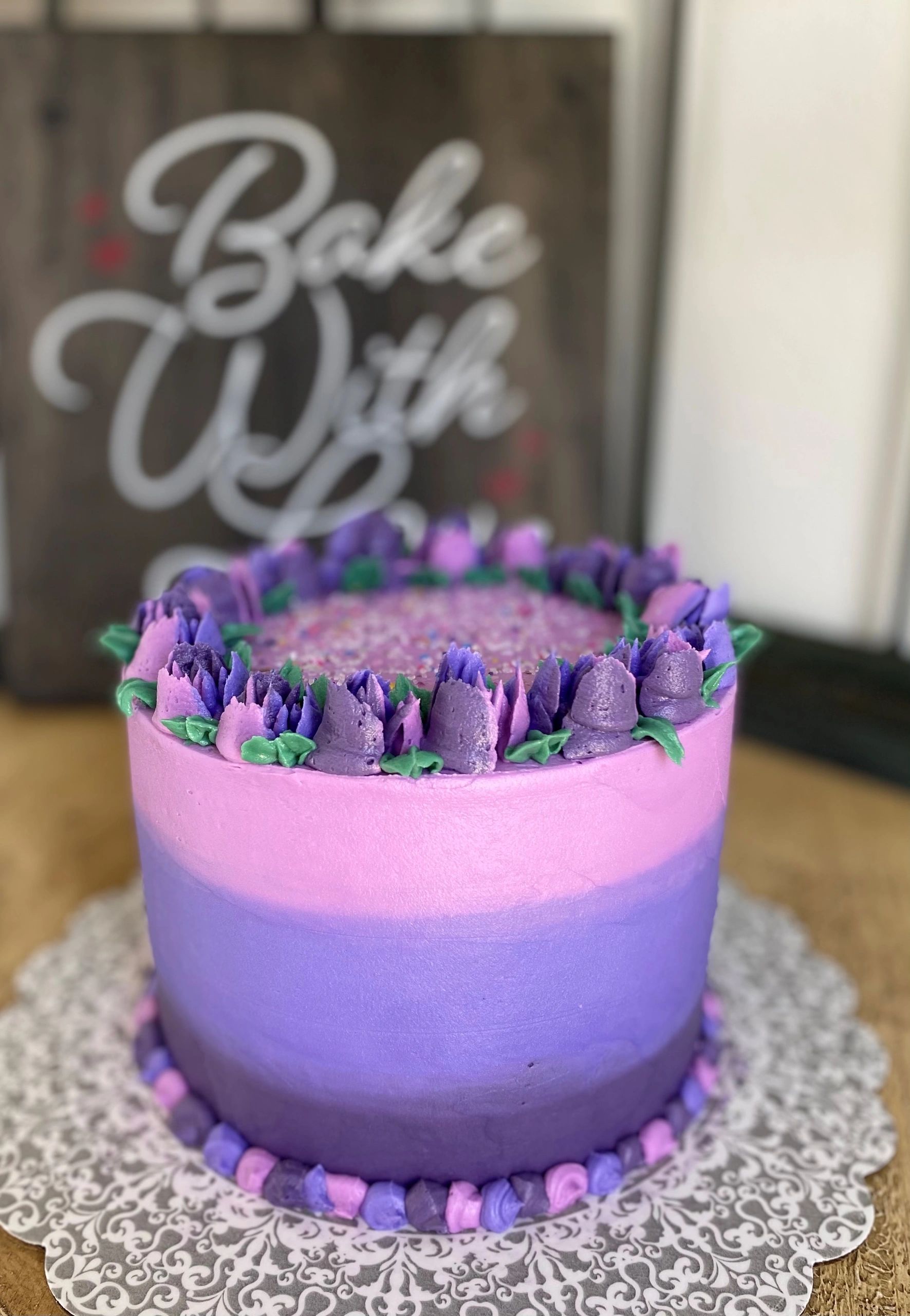 3 fully loaded 6" homemade pistachio layers. Hand chopped pistachios are carefully folded into this rich batter. Our signature homemade, never store bought, buttercream icing embraces this nutty necessity. Topped with more pistachios, we gave this birthday cake a full crown of rosettes.